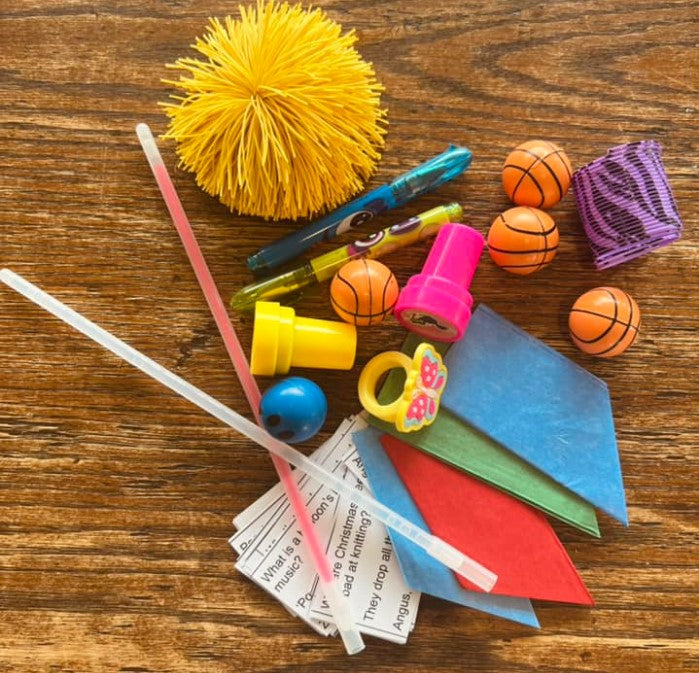 Lovingly handmade by our school parents, packed with great toys, hats and jokes written by our school children!