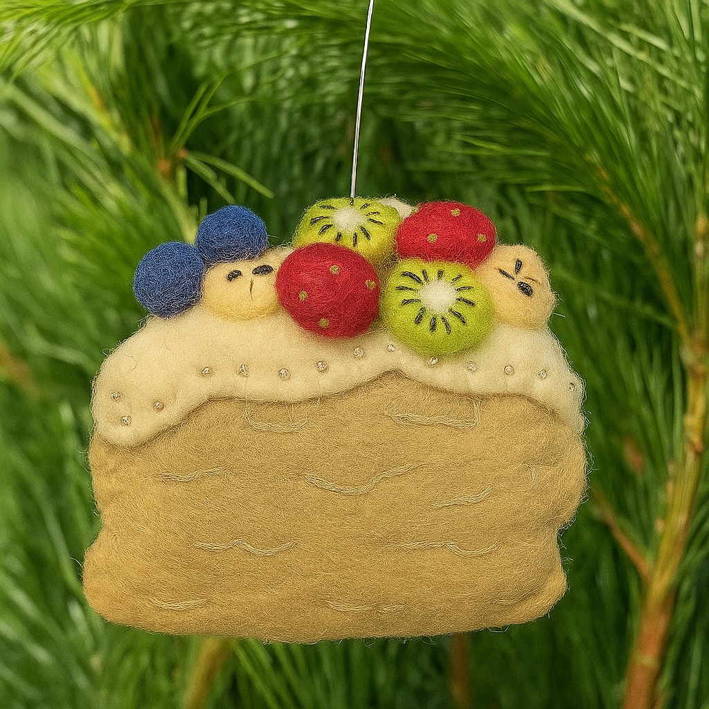 Crafted from 100% New Zealand wool, this cute pavlova topped with fruit is the perfect addition for the Christmas tree!